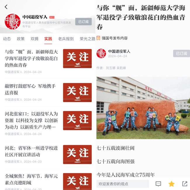 学习强国-中国退役军人强国号报道截图