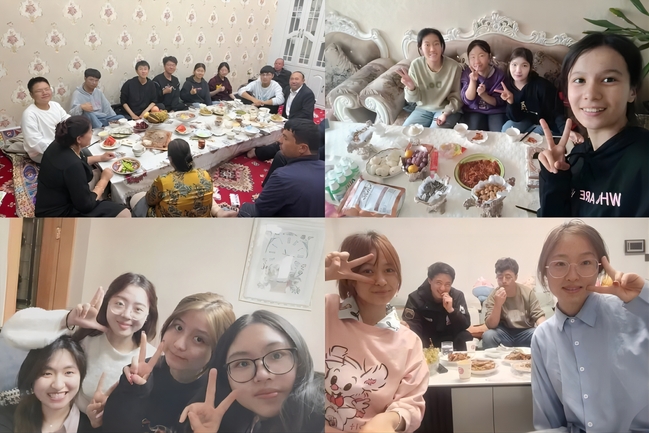 新疆师范大学外国语学院、数学与科学学院、生命科学学院、物理与电子工程学院、计算机科学技术学院、音乐学院开展了“我家也是你家”活动,疆内学生邀请节日期间不能回家的其他省份同学到家里做客,大家在一起品尝月饼、包尔萨克、奶茶、馓子、奶疙瘩等特色美食,在欢乐祥和的氛围中加深了对彼此的了解、增进了感情。