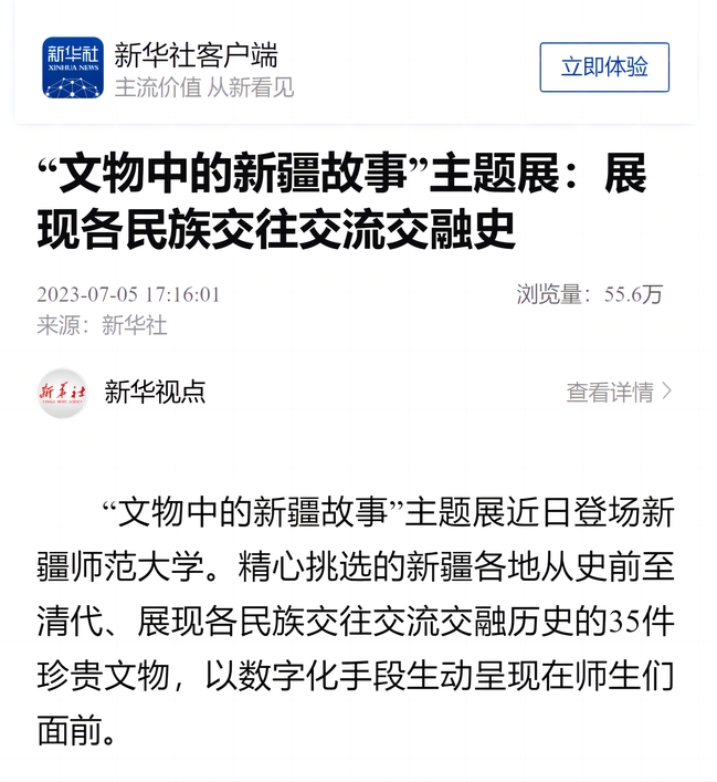 据了解,作为2023年新疆社会科学普及周系列活动之一,主题展还将走进部分社区及中小学校,让更多人了解文物背后各民族交往交流交融的故事。