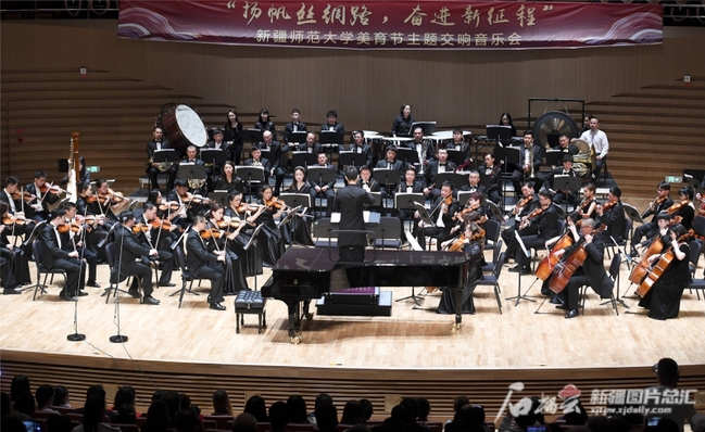 石榴云/新疆日报讯(记者 汤永摄影报道)5月4日晚,新疆师范大学在乌鲁木齐文化中心音乐厅举办“扬帆丝绸路 奋进新征程”美育节主题交响音乐会,新疆师范大学师生与乌鲁木齐艺术剧院交响乐团联袂为观众送上一场艺术盛宴。整场演出格调高雅、主题突出、气势恢宏,让观众深深感受到音韵之美与家国情怀。