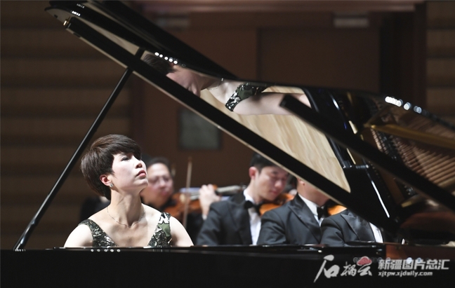 5月4日,乌鲁木齐文化中心音乐厅,钢琴独奏《保卫黄河》现场。