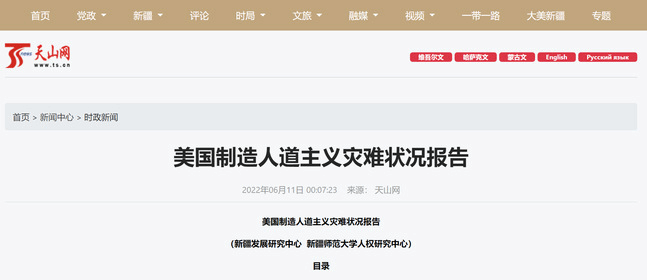 近期,天山网发布我校梁玉春教授团队主笔的《美国制造人道主义灾难状况报告》,揭露美国历史是一部人道主义灾难制造史,美国是全球人道主义灾难的最大制造者、主要操盘手,早已被钉在人类历史的耻辱柱上。