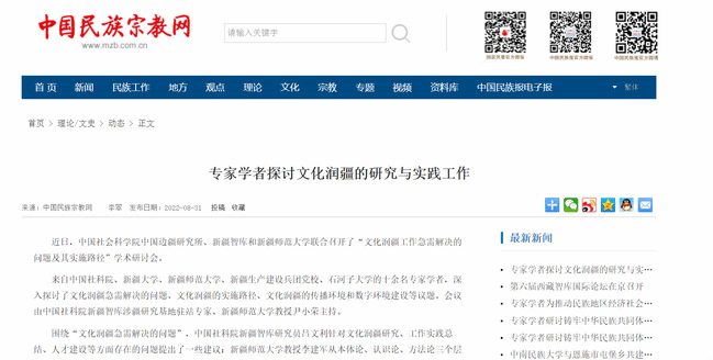 近日,中国社会科学院中国边疆研究所、新疆智库和新疆师范大学联合召开了“文化润疆工作急需解决的问题及其实施路径”学术研讨会。
