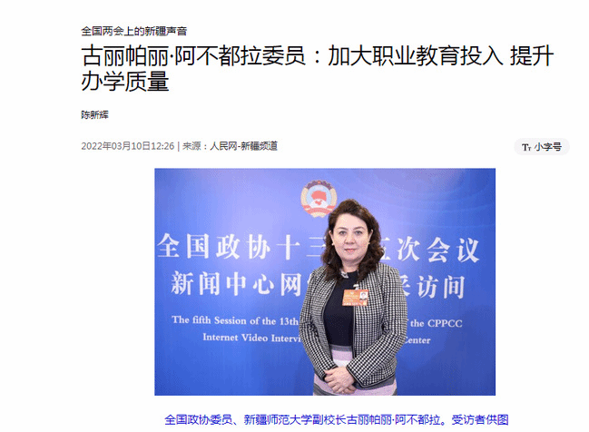 “我今年带来建议都围绕教育领域。”全国政协委员、新疆师范大学副校长古丽帕丽·阿不都拉对如何提升现代职业教育质量非常关注。