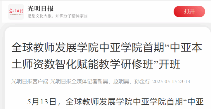5月13日,全球教师发展学院中亚学院首期“中亚本土师资数智化赋能教学研修班”在新疆师范大学开班。教育部教师工作司司长俞伟跃,自治区人民政府总督学、自治区教育厅党组成员孙长波,新疆师范大学党委书记蒋海军,党委常委、副校长王世杰以及来自中亚五国的30名教师参加活动。