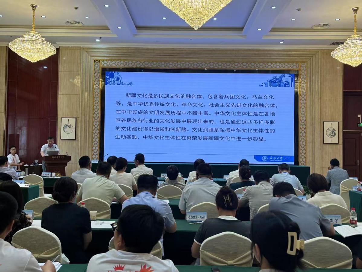 颜晓峰教授发言的题目为:“中华文化主体性是中华文明传承兴盛的深层力量”。文化具有主体性,文化主体性是文化的主动能力。中华文化主体性在中华民族发展、中华文明自立自强中形成塑造,根植民族主体性、展现文明生命力,具有自立自主等鲜明品格,在各地各民族各行业文化发展中展现并通过文化建设增强创新。文化润疆是其生动实践,也让它在新疆文化繁荣中进一步彰显。