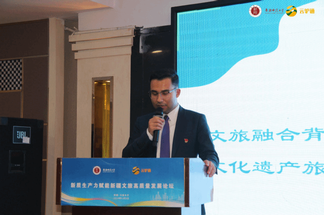 12月1日下午,同期举行了新质生产力赋能新疆文旅高质量发展论坛。论坛开幕式由我校地理科学与旅游学院教师第二党支部书记伊尔凡江·艾合买提江博士主持。王勇辉教授在致辞中希望通过本次论坛,探讨新质生产力如何赋能新疆文旅产业,总结旅游发展新领域、新理论和新方法,推动新时代旅游学科高质量创新发展。