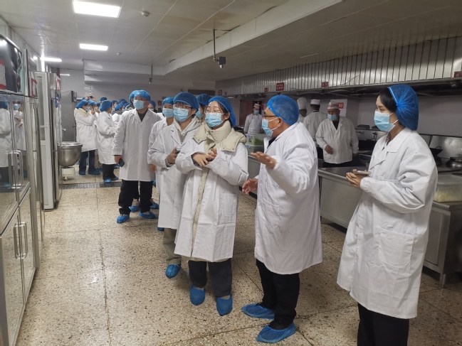 讲座后,“胡杨先锋”优秀学生党员培训班党员集体参观了食堂后堂。在食材储存区,党员们看到储存区内各类新鲜食材整齐摆放,仓库通风良好、温度适宜。食堂负责人介绍,所有的食材都是经过严格筛选和检验,从正规渠道采购而来,并且都建立了完善地食品追溯体系。在食品加工区,这里分区明确,洗菜区、切菜区、烹饪区、洗碗区等一应俱全,并且每个区域都有严格的卫生标准和操作规范。整个参观流程全体党员们看到了食材从清洗、切配到烹饪的全过程,详细了解了食品采买、进货查验、储存分类、加工制作等各个环节的规范要求。