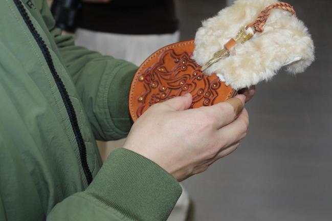 孟璐璐在讲座中向大家介绍了源远流长的新疆皮雕艺术。她认为,新疆皮雕艺术可追溯至草原游牧民族的深厚传统。皮雕技艺留下的不仅是棕褐色皮质上的雕刻纹路,更凝聚着中华文明新疆篇章的古往今来,每一件作品都藏有属于新疆的情感故事。