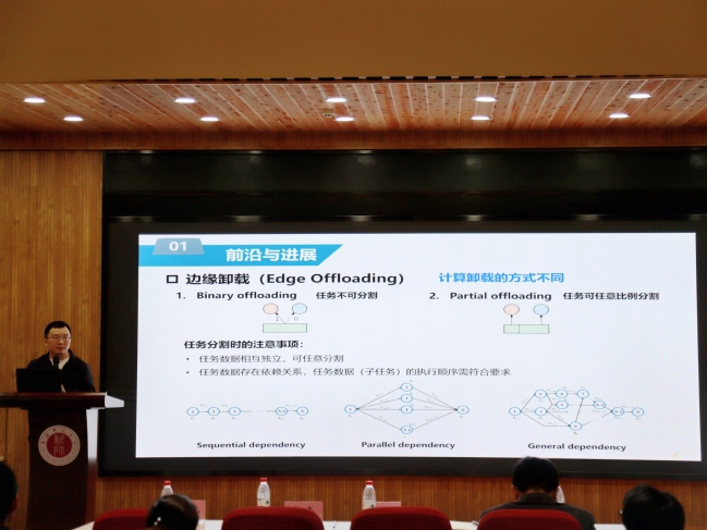 CCF嵌入式系统专委会副秘书长、南京理工大学周俊龙副教授以《边缘智能:前沿与进展》作报告从边缘缓存、边缘训练、边缘推理、边缘卸载、云边协同的多个方面详细介绍了边缘智能的前沿研究进展,并分享了其团队在边缘智能及其协同方面的最新研究成果。