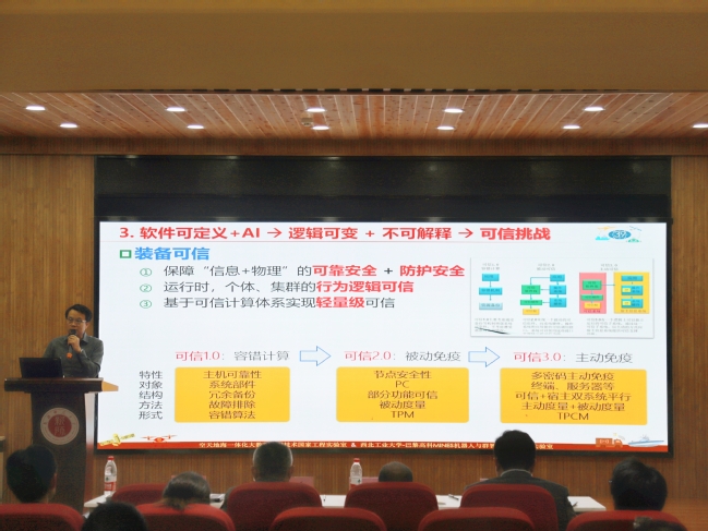CCF嵌入式系统专委会副主任、西北工业大学张凯龙教授在题为《软件定义(群)智能系统:体系与技术》的报告中,围绕装备群化智能发展、计算体系的新演化、软件定义及其实践三个方面介绍了基于软件定义的 (群)智能装备体系与技术,并结合无人机集群、嵌入式可信等科研案例进行了展示和讨论。