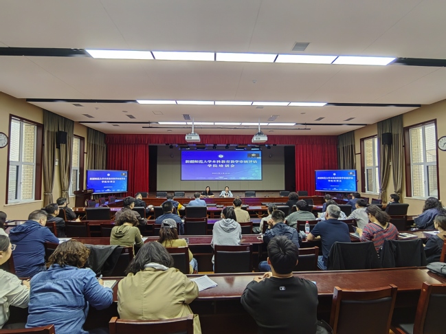 本次培训特邀伊犁师范大学教务处处长刘淼作线上专题辅导。刘淼以“新一轮审核评估迎评准备与策略建议”为主题,结合该校审核评估实践经验,系统解读了评估指标体系中的核心考察点、专家考察方式及迎评工作的关键环节等,为学院迎评工作提供了全面指导。