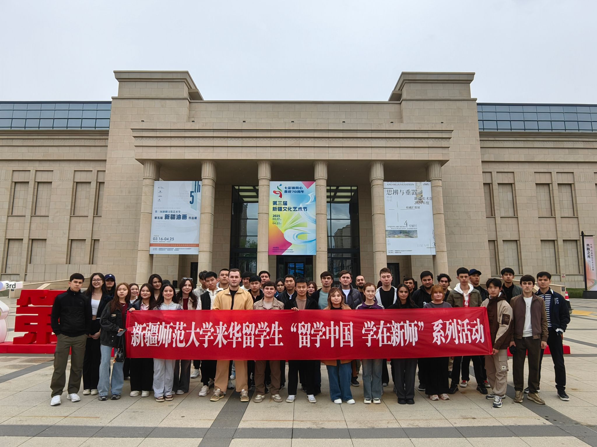 为弘扬和传播中华优秀传统文化,4月16日下午,我校组织50余名来华留学生来到新疆美术馆开展主题为“留学中国·学在新师”研学活动,沉浸式感受新时代新疆文艺事业的发展成就。