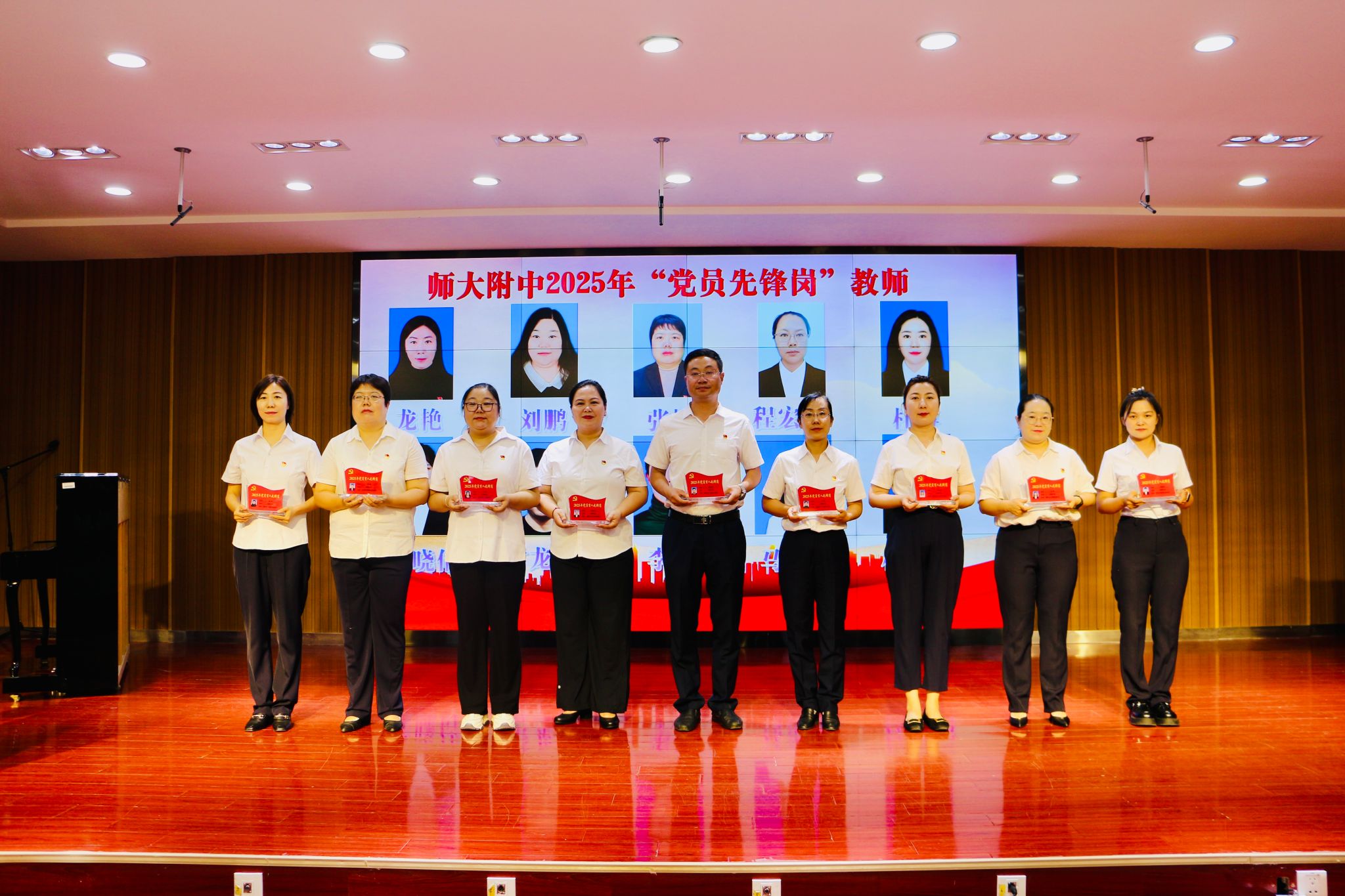过去的一年,在学校党委的正确领导下,我校附属中学广大党员们立足岗位,无私奉献,涌现出一批先进典型。为表彰先进,发挥榜样的力量,附属中学党委副书记、校长杨艳同志宣读了《新疆师范大学关于授予龙艳等10名同志2025年“党员先锋岗”的决定》,附中党委委员们为受表彰的党员同志颁授党员先锋岗工作牌。附中高中第三党支部张颖同志代表受表彰教师发言,表达了作为优秀党员今后的努力方向与决心。