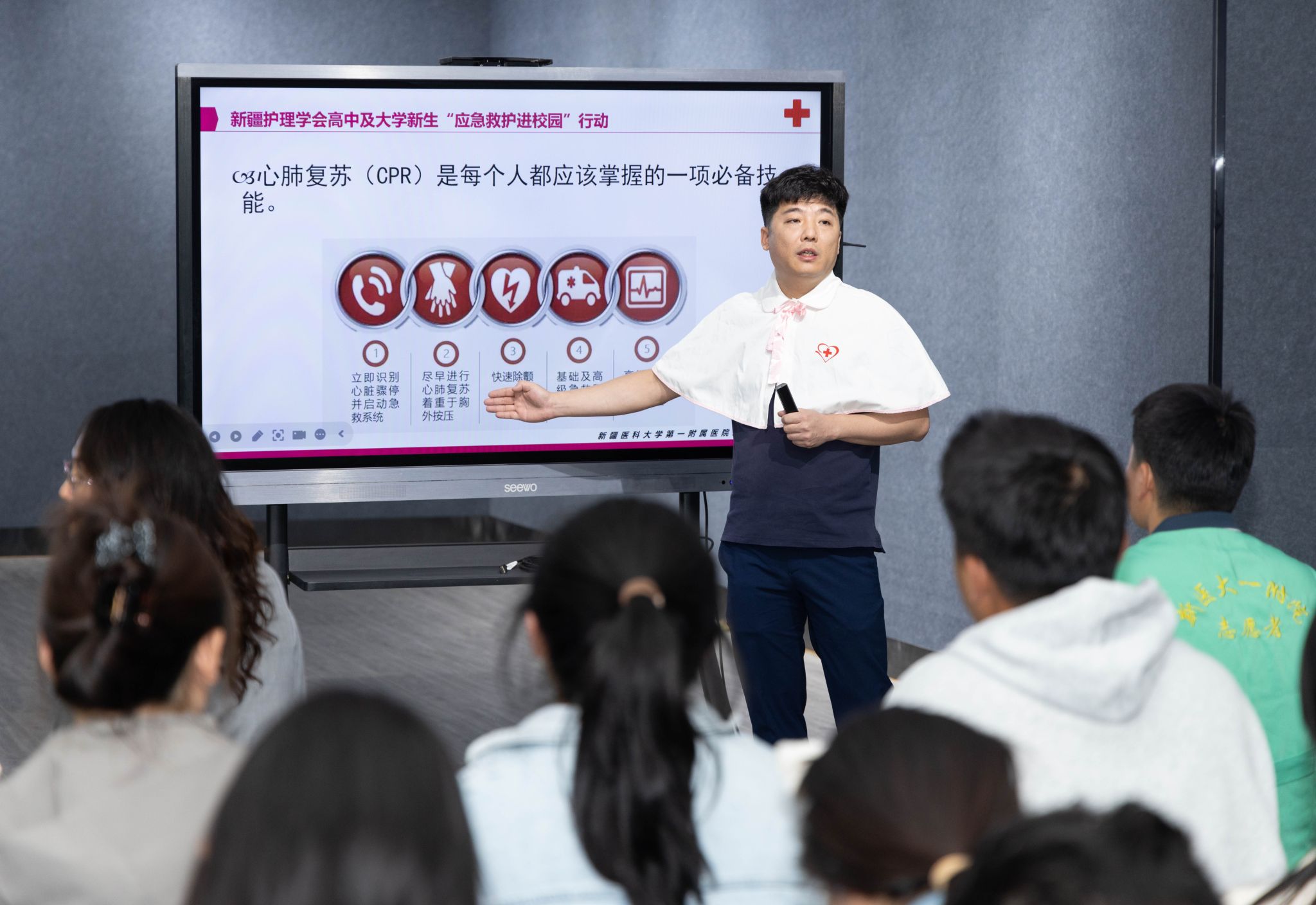 护士长讲解徒手心肺复苏、海姆立克法等知识