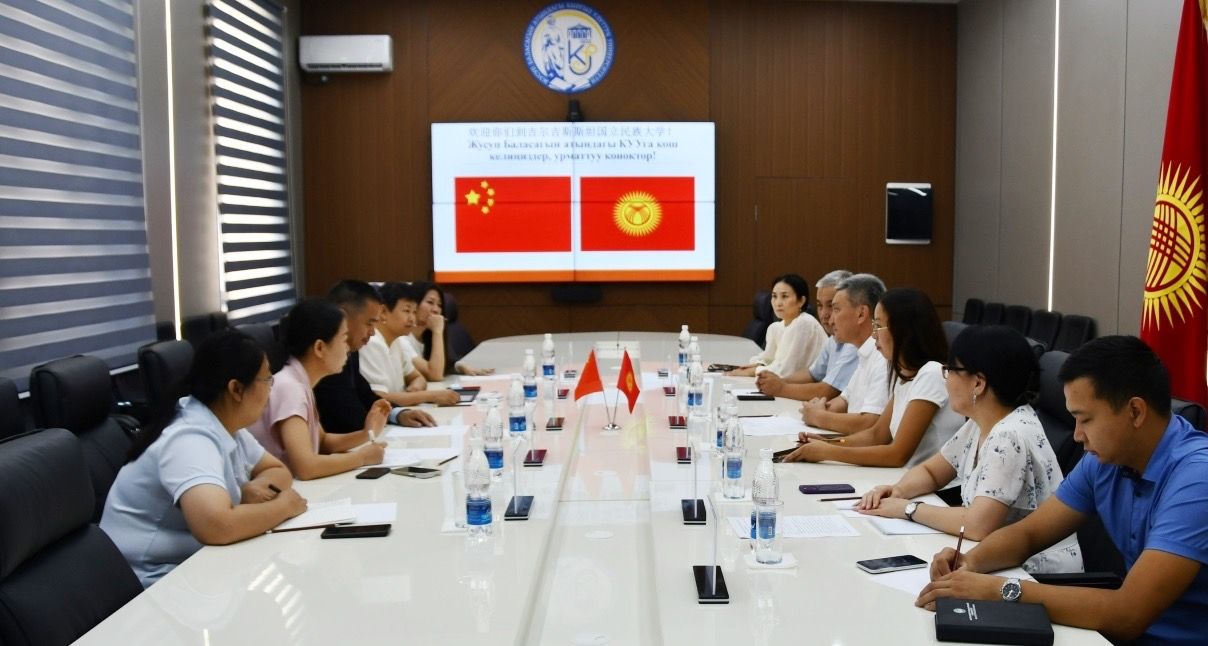 与吉尔吉斯民族大学孔子学院中、吉方院长交流