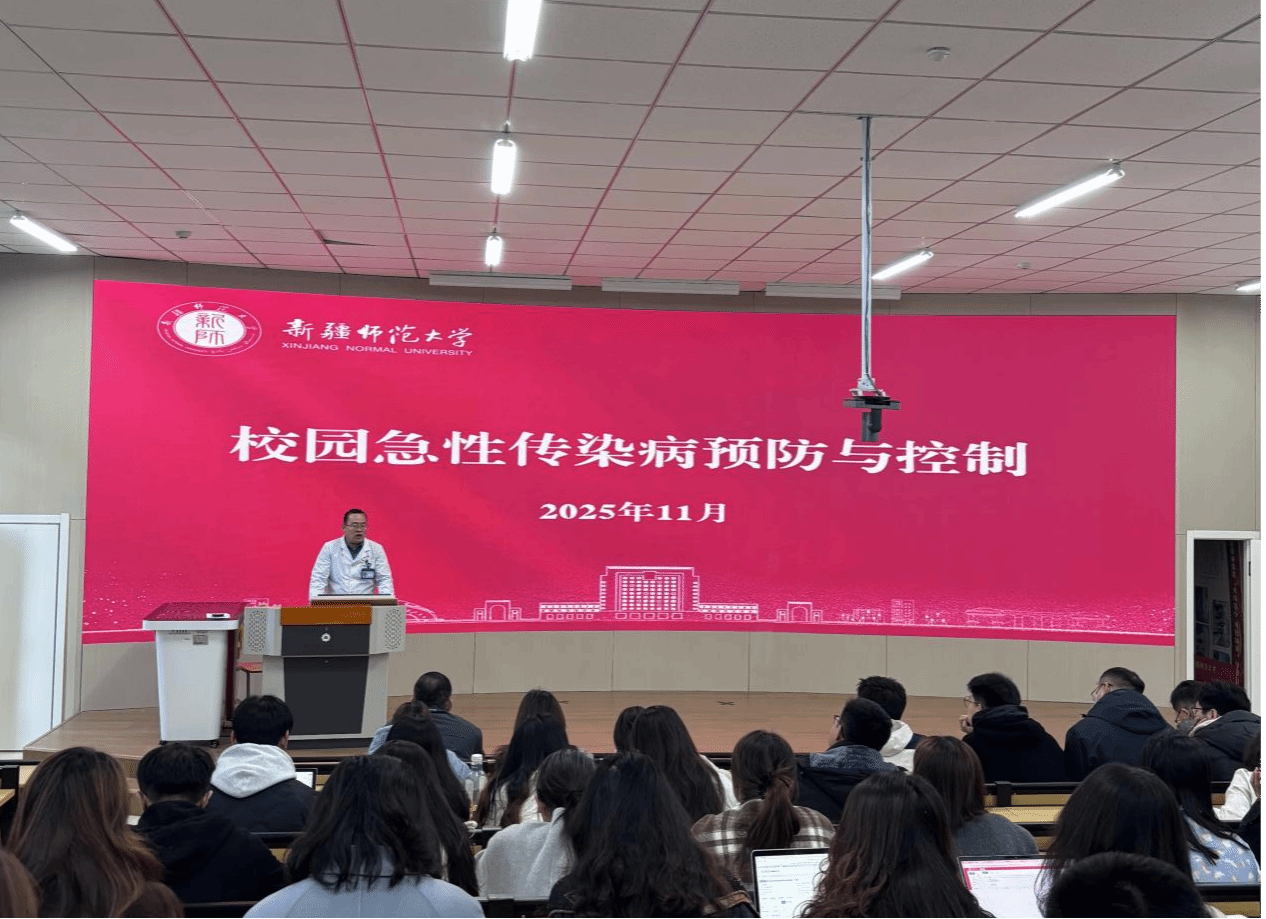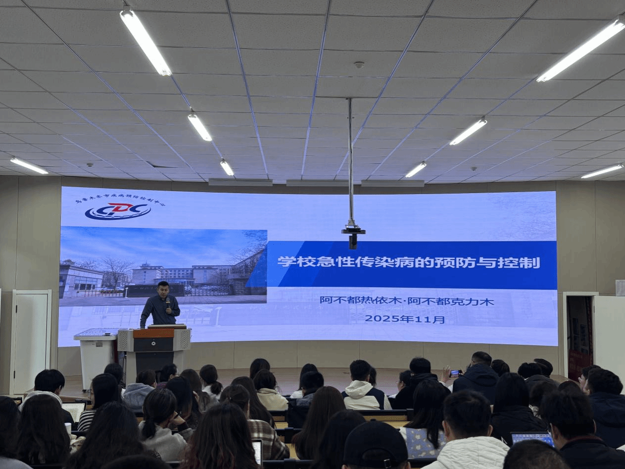 冬春季是传染病的高发期,为筑牢校园健康安全防线,深化我校辅导员“四位一体”的培训模式,聚焦校园安全稳定与学生平安健康,切实提升辅导员应对和处置急性传染病的专业能力,守护师生身心健康,11月4日,我校党委学生工作部联合校医院,特邀乌鲁木齐市疾病预防控制中心(卫生监督所)传染病防制科副主任医师阿不都热依木·阿不都克力木在温泉校区笃学楼118报告厅开展《校园急性传染病预防与控制》专题培训。本次培训由校医院副院长徐疆勇主持,全体辅导员参会学习。