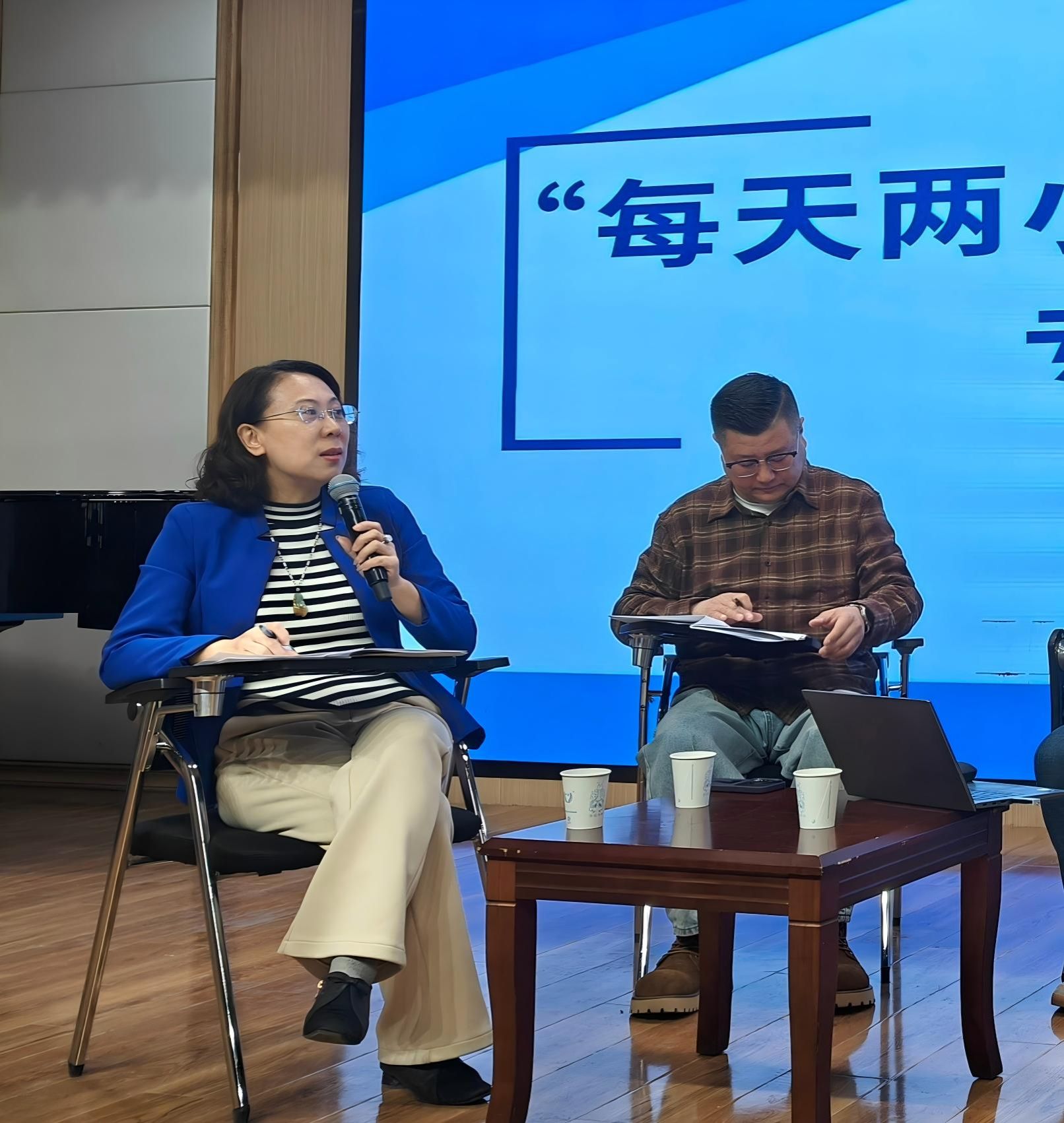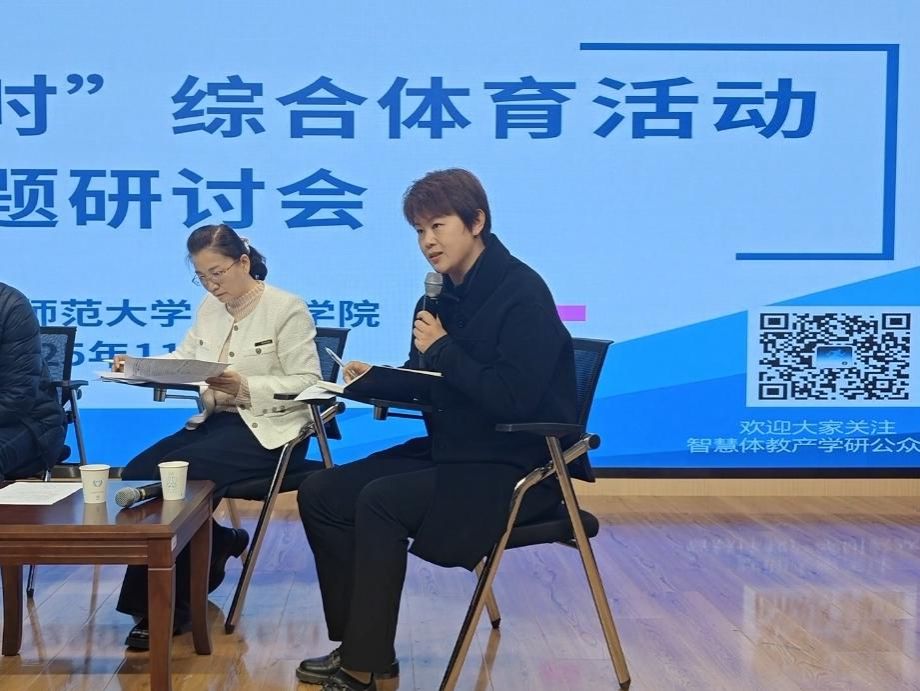 作为高校人才培养的重要平台,虚拟教研室着力破除学段壁垒,推动产教融合。我校体育学院副院长曹玉萍介绍了学院在人才培养方面的改革举措,包括在本科生培养中强化本地中小学实习实践环节,在研究生培养中引导其聚焦“两小时综合活动体系”等基础教育真实问题开展研究。她表示,学院将开放全天候体力活动监测、心率监测仪等科研设备资源,支持中小学进行精准的运动负荷评估,实现科研资源与基础教育实践的深度融合。