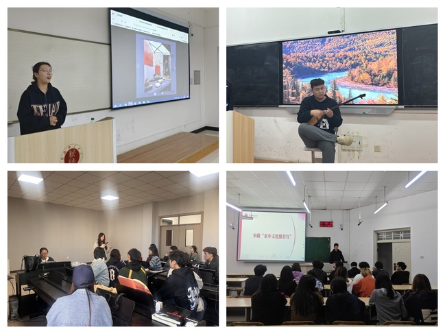 在“争做‘家乡文化推荐官’”环节,中国语言文学学院、物理与电子工程学院、生命科学学院、音乐学院、美术学院等学院学生积极争做“家乡文化推荐官”,化身家乡文化的使者,通过图片展示、视频播放、乐器表演等多种方式介绍了山东潍坊的风筝、福建厦门的闽南皮影戏、新疆哈萨克族人民的传统弹拨乐器等非遗文化,展现了各自家乡的特色与魅力。