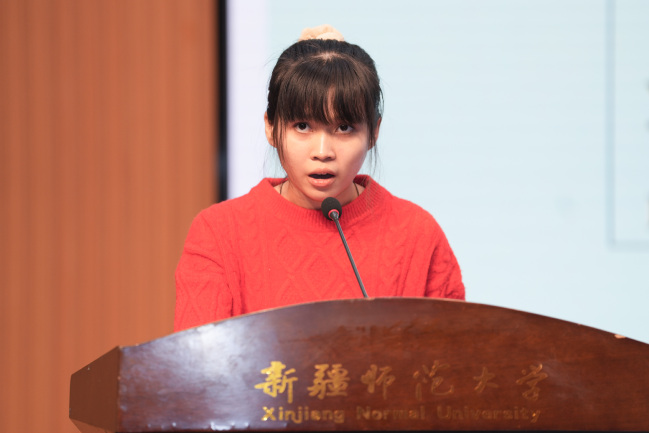 国际文化交流学院2023级商务汉语班的缅甸留学生陈伊宁、哈萨克斯坦留学生叶尔尕孜·娜孜分别代表老生和新生发言,代表留学生表达了对新疆师范大学的感谢,表示将以更加饱满的热情、更加坚定的信念,投入到新学期的学习和生活中,为实现个人梦想、促进世界和平与发展贡献自己力量的决心。