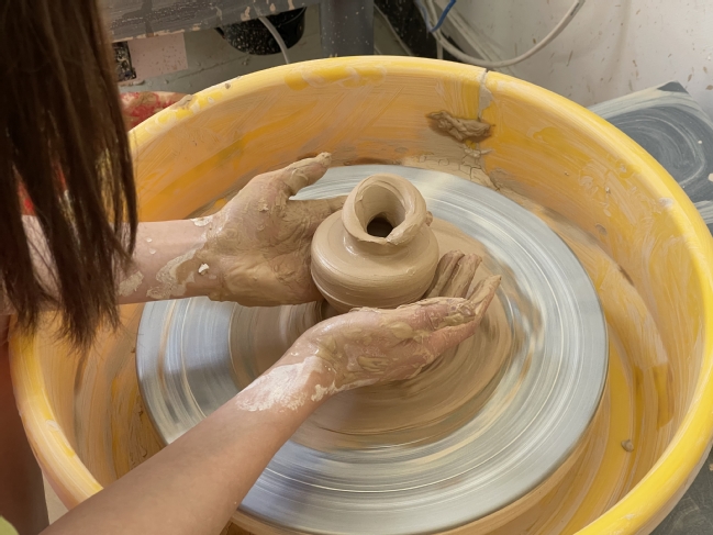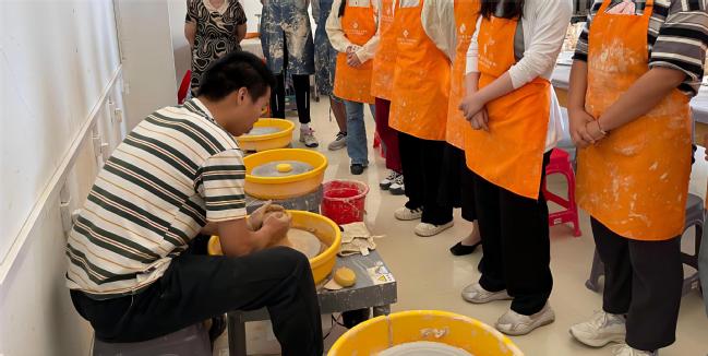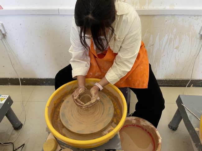 活动伊始,学生们在教师的带领下参观了陶艺室,随后由陶艺老师详细讲解了陶艺制作的基本原理与技巧。在陶艺制作的过程中,学生们从陌生到熟悉,逐渐掌握了陶艺制作的力度与技巧。学生工作部(处)副处长刘晶晶介绍说:“陶艺作为我校开展美育润心的特色活动之一,不仅有助于提升学生的审美素养,更能够通过亲手制作陶艺作品的过程,释放压力,缓解情绪。安静独立的创作过程帮助参与者集中注意力,关注当下。陶泥可以反复重塑的特性使参与者自我接纳,更自由的发展自我人格,完善自我意识,将内心的压力释放到柔软的泥土中去。”