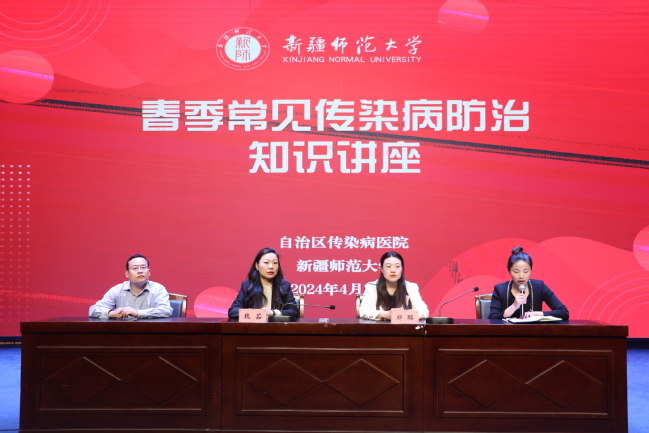 本次讲座由自治区传染病医院公共卫生科主任魏茹、新疆医科大学第八附属医院院感管理科副主任医师郑璐主讲,围绕春季常见传染病的种类、症状、传播途径、预防措施及麻疹传染病的流行状况及防治方法等方面,通过丰富的案例、图片、科学的数据及有奖问答的方式,进行了生动地讲解,使现场的老师们对传染病有了更全面、更深入的了解。同时,还强调了辅导员在日常工作中要引导学生养成良好的卫生习惯和生活方式,要密切关注学生的身体状况,发现异常及时处理并上报。
