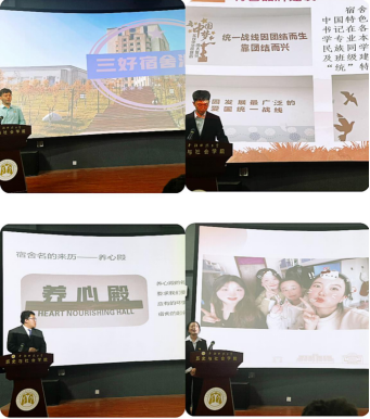 答辩现场气氛热烈,各宿舍代表通过精心准备的PPT、视频、实物展示等形式,充分展示了宿舍的文化特色、管理成效、创新实践及活动特色。其中,部分宿舍注重空间布局和环境美化,将宿舍打造成了一个个温馨的小家;部分宿舍注重文化氛围的营造,通过悬挂励志标语、设置文化角等方式,让宿舍充满了浓郁的文化气息;还有部分宿舍在管理创新方面下足了功夫,制定了宿舍公约、设立了值日生制度等,让宿舍管理更加规范有序。
