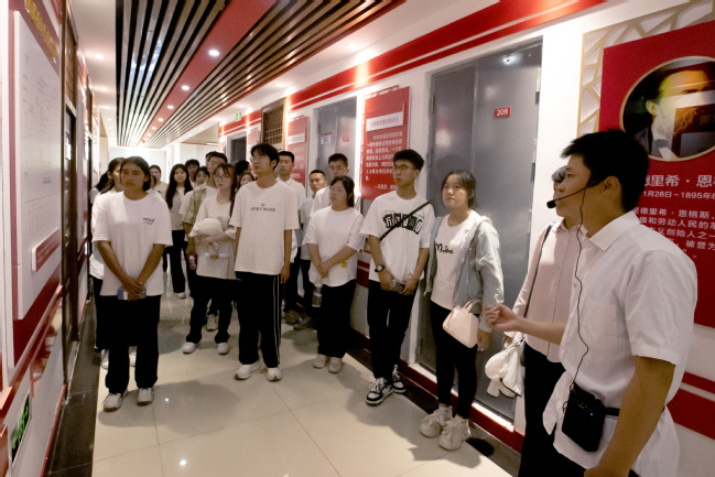 9月3日,2023年新生开学典礼结束后,学生工作部(处)组织温泉校区11个学院共3652名新生参观了马克思主义学院新时代文明实践党史学习教育基地。