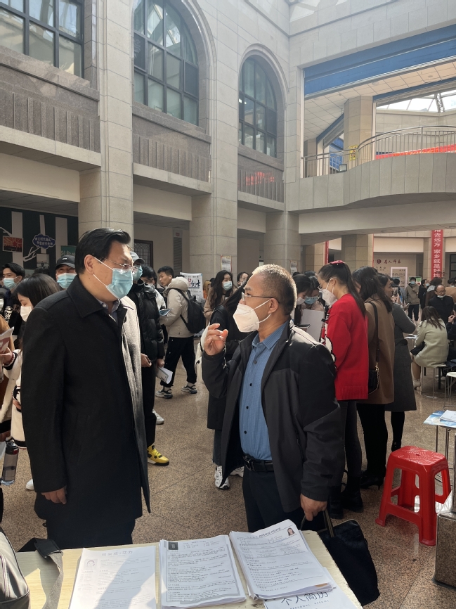 校党委常委、宣传部部长高靖来到招聘会现场,针对学生就业难问题与用人单位进行了深入交流。在充分了解招聘岗位需求的基础上,结合毕业生的求职意向及求职心态,用案例向毕业生说明今年就业形势的严峻性,教育引导毕业生“先就业再择业”,鼓励毕业生大胆主动地求职,针对毕业生在求职中遇到的具体问题和困惑给予了悉心指导和耐心解答,同时积极向用人单位推荐我校毕业生。