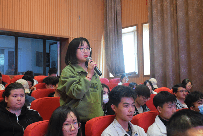 水磨沟区公安分局刑警大队反诈中心民警侯鹏以现场互动交流的方式,结合实际案例,围绕帮信罪、电信网络诈骗特点、电信网络诈骗基本类型三个方面展开了细致讲解,引导学生增强反诈意识。中国光大银行乌鲁木齐分行工作人员迪娜介绍了银行卡三大分类账户及功能,倡导学生对银行卡实名,不要出租出借银行卡。