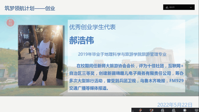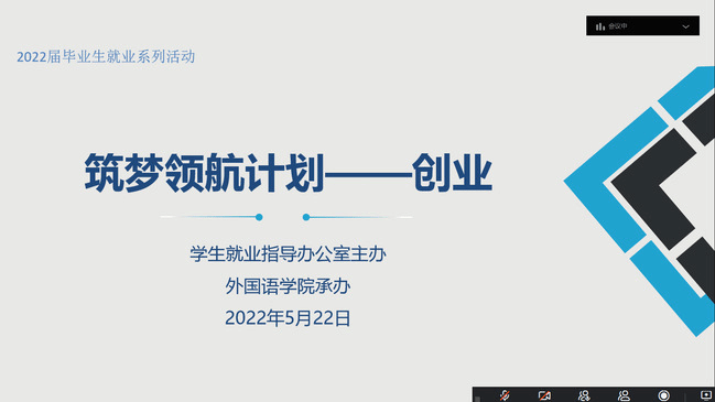 为进一步培养毕业生创新创业意识,激发创新创业思维,促进毕业生高质量就业,提高创业带动就业意识,学生就业指导办公室联合外国语学院于5月22日,组织开展“筑梦领航计划——创业”主题讲座分享会,特邀我校王子微、马丽娜、梁波、郝浩伟等4位优秀创业者分享创业经历。讲座由外国语学院辅导员王瑾主持,学生就业指导办公室王双午、外国语学院党委副书记刘汉成以及各学院毕业生540余人线上线下参会。