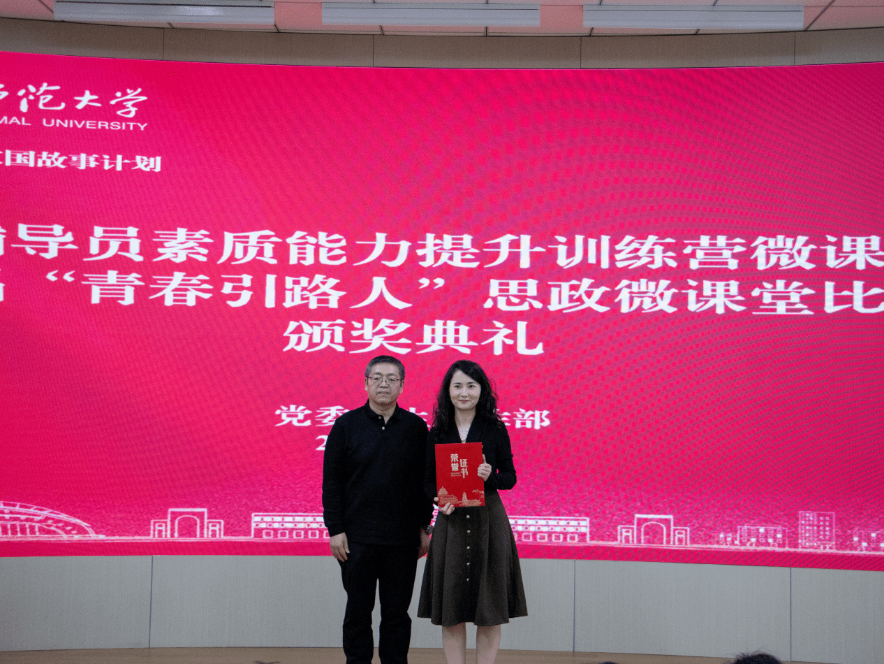 教务处副处长姜玉琴、马克思主义学院副院长罗志佳为选手颁发二等奖