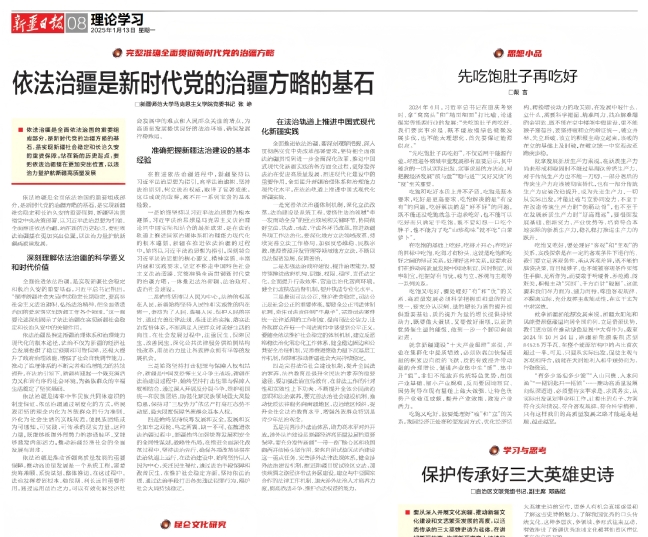 ■依法治疆是全面依法治国的重要组成部分,是新时代党的治疆方略的基石,是实现新疆社会稳定和长治久安的重要保障。站在新的历史起点,要把依法治疆摆在更加突出位置,以法治力量护航新疆高质量发展。