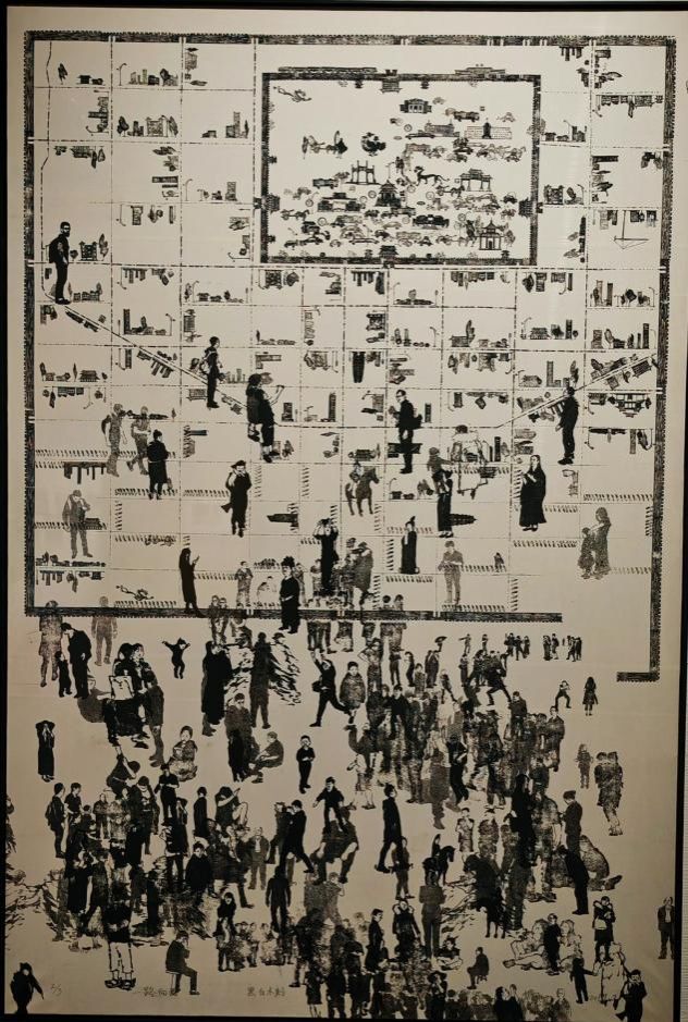 “守正”并非固守传统,而是对文化基因的创造性激活。在多重语境下,新疆美术呈现出融汇创新的特点。在研学传统美术语言的基础上找到语言共性,新疆美术在“守正”的基础上不断探索美术语言的丰富性,展现时代特性,实现从传统绘画表现手法逐步向图式语言、综合表现的探索。这些作品既蕴含传统美术特点,又彰显新技术新形式,直观地展现了“创新”不是无根之木,要在掌握本土文化特征的基础上,深挖美术作品的当代性。莫合德尔·亚森的《英阿瓦提的人们》突破油画写实传统,大胆地对人物形象进行结构性概括,减弱色彩对比,以结构性概括融合中国传统色彩观,画面呈现柔和文雅的东方意蕴。涂少辉的综合材料作品《星河记忆2》将绢本国画与装置相融合,作品在保留传统国画气韵的基础上,利用装置艺术的视觉冲击力特性,加强国画的精神穿透力。李开的《一路向西》在版画作品中融合了设计平面构成的特点,利用疏密和画面分割展现自己对传统与现代、现实与超现实之间的思考。这些尝试不是简单的美术语言创新,而是画家将中西方艺术表现方式对当代美术语言的多元性探索。