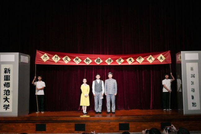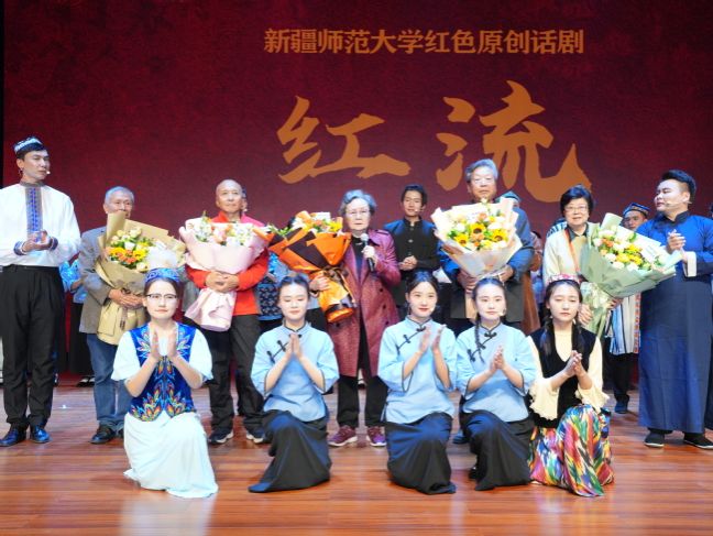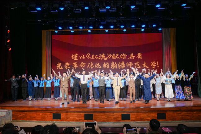 在校党委的领导下,话剧《红流》由党委宣传部倡议策划,美育中心组织创作,我校各学院学生参与出演。该剧以抗战时期的迪化师范学校为背景,讲述了来自延安的共产党人许亮、刘子平、陈谷音等人在这里教学、编辑教材、组织修建校舍,向各族学生宣传党的抗日主张,运用话剧、歌咏等形式号召各族群众团结一致、共同抗战,引导师范学校大批青年学子走上革命道路,唤起新疆各族民众的爱国情怀的感人故事。