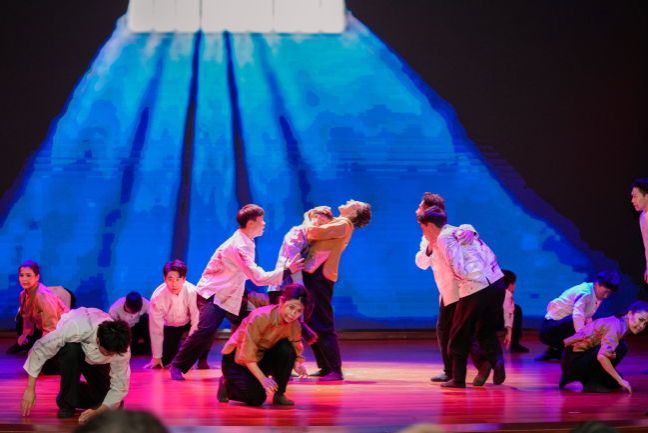 演员们精彩的演绎重现了一个个智慧而又勇敢的人物形象,诠释了几位共产党员的坚定信仰和无私奉献。话剧还融入了丰富的歌舞元素,根据剧中人物创作的音乐,现场演员和合唱队伍共同演唱了《松花江上》《保卫黄河》《黄河歌唱队队歌》等歌曲,激昂的旋律让观众们深感振奋。舞蹈演员们通过生动舞姿展现了教材编纂的场景,在展现狱中斗争的舞蹈《囚徒歌》中极致的演绎使在场观众深受感动。随着剧情的推进,观众们被剧中人物的坚定信念和无私奉献深深打动,观演现场气氛热烈。