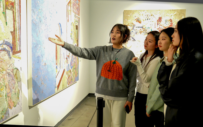 美术专业研究生为我校观展学生讲解