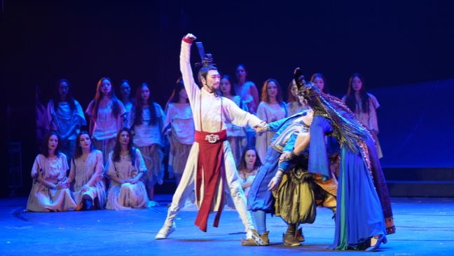 舞剧《张骞》以张骞出使西域的故事为蓝本,展现了中华民族坚毅、忠贞、真挚、信义的优秀品格和坚定信念。舞剧全篇通过“授节”“守节”“奉节”“使节”四个篇章演绎了张骞“凿空之旅”一路上他经历了严酷的风霜雨雪,绮丽的风土人情,难熬的囚禁幽困,但他始终没有忘记自己的使命。全剧展现出各民族交往交流交融的生动场景,有欢笑,有泪水,有个人的小幸福,更有家国的大情怀。我校师生认真观看演出,深受感染,在谢幕环节不禁起立为演员鼓掌。