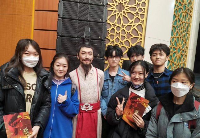 在台下的观众中,坐着陈星江的学弟学妹们,他们的眼神追逐着台上的角色张骞,也追逐着台上的舞蹈演员陈星江,这一幕也是学校最美的文化传承。演出结束后,我校学生纷纷上台和演员们合影留念。谈及观看演出的感受,大家提到最多的词便“感动”,为了张骞的不懈坚持而感动、为了千百年前的民族相亲而感动,更为今日台下各民族相聚一堂而感动。