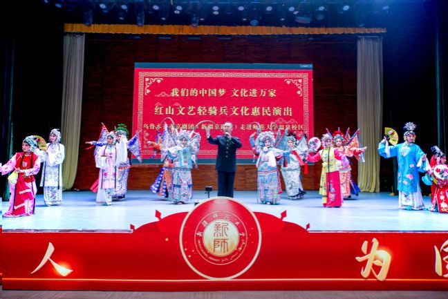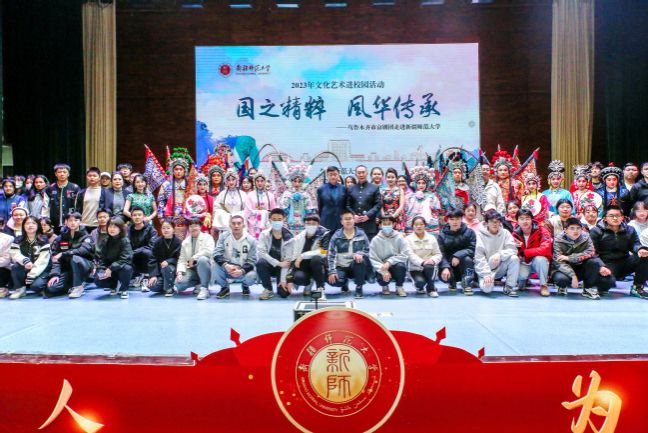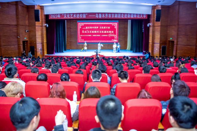 为深入学习宣传党的二十大精神,深入推进文化润疆工程和铸牢中华民族共同体意识教育落地落实,全面加强和改进学校美育工作,推进学校校园文化建设,根据自治区教育厅、自治区文化旅游厅《关于开展2023年文化艺术进校园活动的通知》安排,我校于3月15日、16日在昆仑校区、温泉校区举办了文化艺术进校园活动首演——乌鲁木齐市京剧团走进新疆师范大学专场演出。校党委副书记刘俊,党委常委、宣传部部长高靖出席并观看。