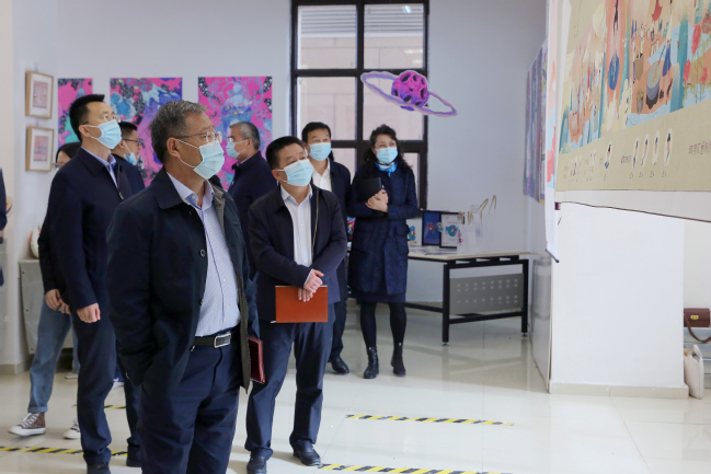 4月12日下午,由我校美育中心主办、美术学院承办、图书馆协办的“感物而动 艺创有礼——文旅融合背景下传统工艺创意设计展”在温泉校区图书馆一楼正式开幕。校党委书记葛国,党委副书记、副校长于祥成,党委常委、副校长王晓峰,党委常委、副校长李魁铭,党委常委、纪委书记王志勇,党委常委、副校长帕力旦·吐尔逊,党委常委、宣传部部长高靖出席展览。