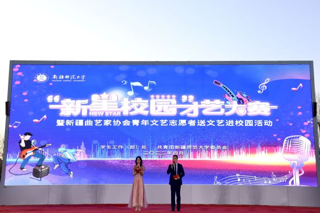 为贯彻落实文化润疆工程,推动新时代曲艺文化进校园,促进学生德智体美劳全面发展,4月16日晚,我校“新星校园”才艺大赛暨新疆曲艺家协会青年文艺志愿者送文艺进校园活动在温泉校区学生活动广场举行。校党委书记葛国,党委常委、宣传部部长高靖出席活动。500余名师生在现场观看演出。