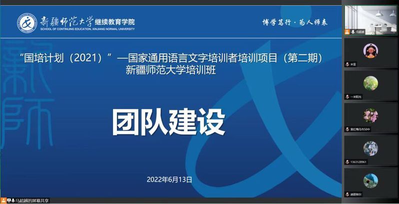 为加大国家通用语言文字推广力度,提升普及程度和质量,落实国家语言文字事业“十四五”发展规划相关要求,我校于6月13日启动实施了第二期“国培计划(2021)”——国家通用语言文字培训者培训项目。来自乌鲁木齐市、伊犁州、塔城地区、克拉玛依市、阿勒泰地区、博州、昌吉州、吐鲁番市和巴州的149名教师在线参加了此次培训。