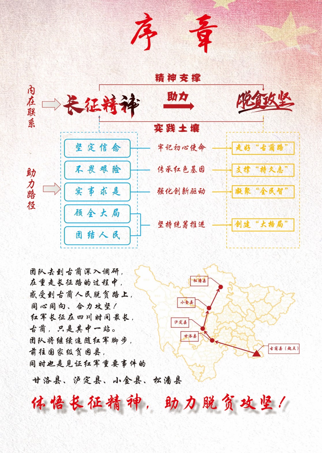 在本次调研与备赛的过程中,同学们深刻地领会了长征精神与脱贫攻坚精神一脉相承的红色底色,“贫困之冰,非一日之寒;破冰之功,非一春之暖”,锲而不舍的钉钉子精神对于脱贫攻坚的一线战士们是如此,对于在学习中的我们亦应如此。