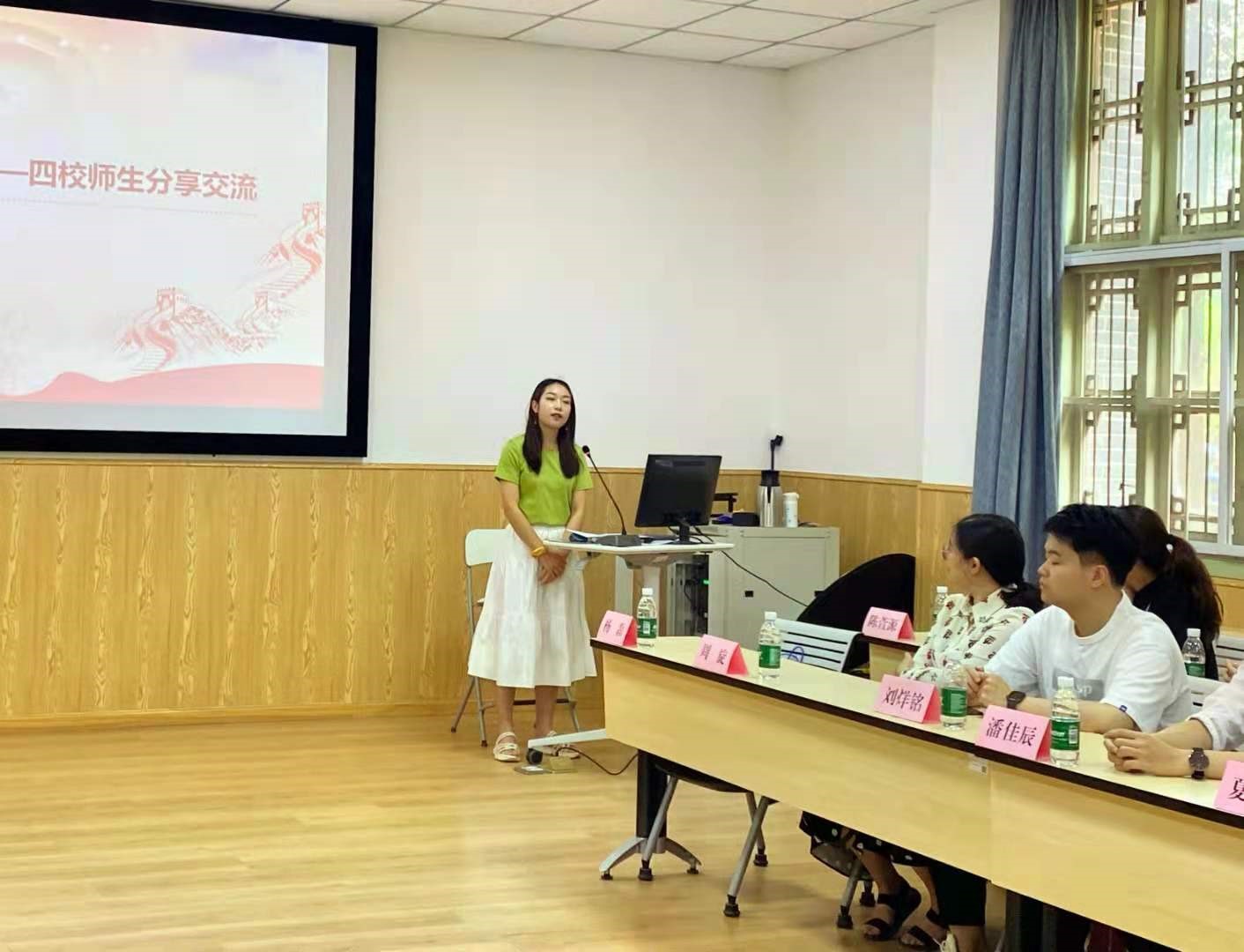 参观完江姐纪念馆后,四校师生共同来到了四川大学公共管理学院114教室进行了主题为“话使命担当”的交流分享,分享会由我院陈萱源老师主持。