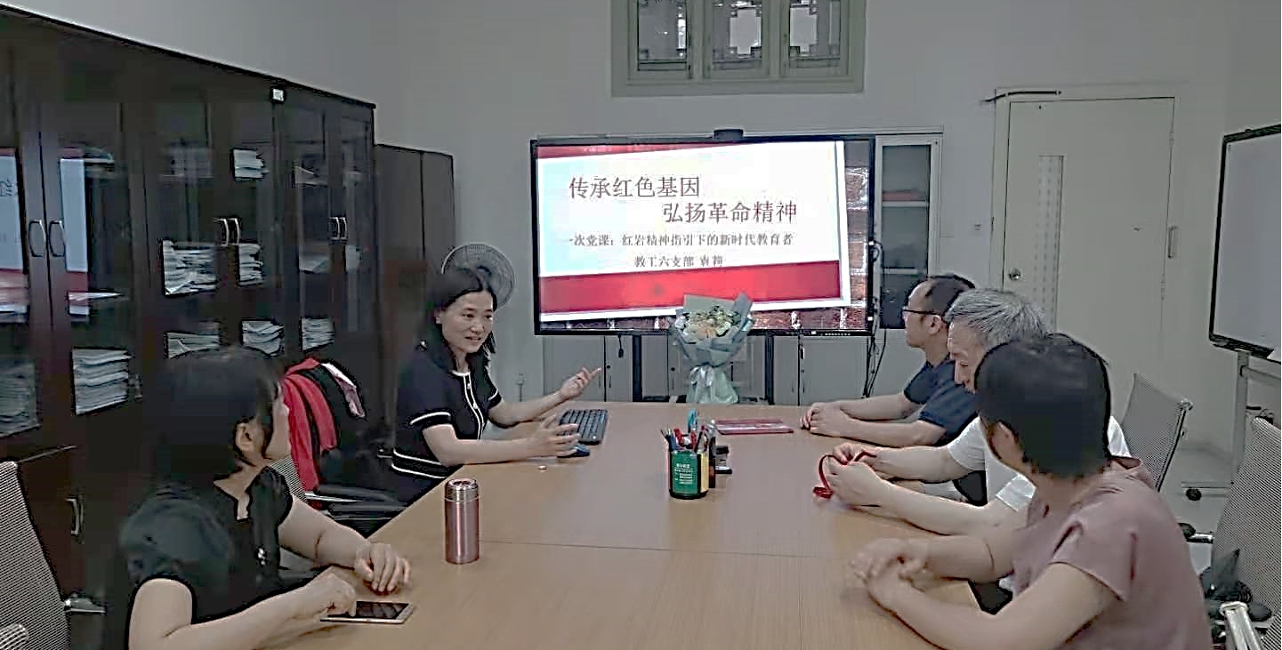 首先,党支部书记袁莉以“红岩精神指引下的新时代教育者”为题,讲授了一次党课。分享了前期前往红岩革命基地学习的相关感想,明确了红岩精神是以周恩来、江竹筠、叶挺等同志为代表的,老一辈无产阶级革命家、共产党人和革命志士在风雨如磐的斗争岁月中形成的“爱国、奋斗、团结、奉献”的革命精神。作为新时代的教育者和科研工作者,要在红岩精神的指引下,熔铸勇攀高峰的科研精神,锻造自身的科学文化,切实肩负起立德树人的责任,为国家培养出更多具有创新能力的合格建设者和可靠接班人。