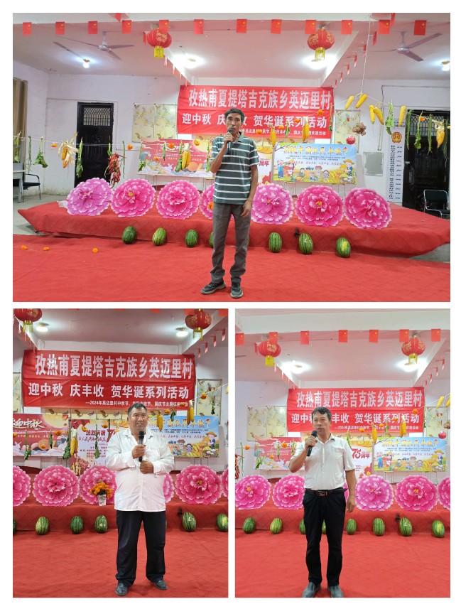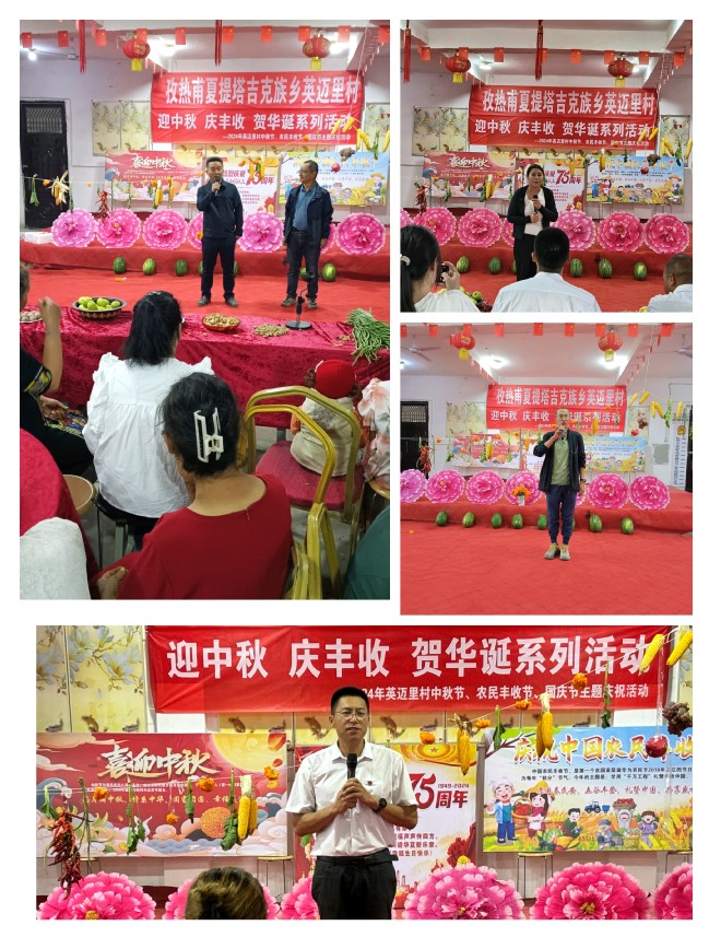 为喜迎中秋节、农民丰收节和国庆节,营造浓厚的文化氛围,展示村民劳动成果,激发勤劳致富的内生动力,呈现丰收的喜悦,9月16日晚上,学校驻莎车县孜热甫夏提塔吉克族乡英迈里村工作队联合村“两委”,开展2024年“喜迎中秋促团结 欢庆丰收增信心,感恩祝福贺华诞”主题庆祝活动,干部群众120余人参加。活动由村干部哈妮萨罕·马合木提和实习生周怡伶主持。