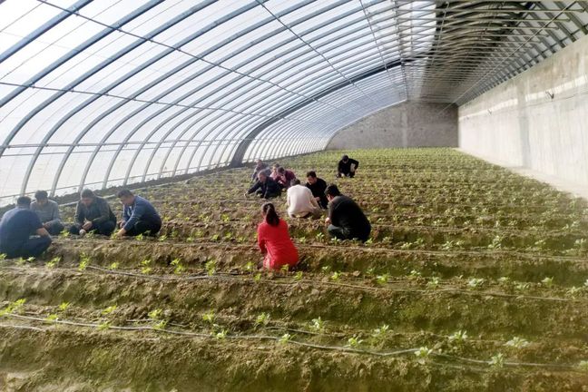 村民们在温室大棚中务工