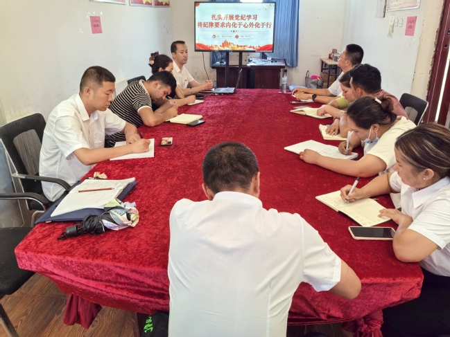 积极发挥模范作用,工作队长带头讲廉政党课。7月2日上午,工作队队长艾斯卡尔·买买提同志以“扎实开展党纪学习教育,将纪律要求内化于心外化于行”为题,为英迈里村全体党员干部讲授党纪学习教育专题党课。艾斯卡尔紧密结合学《条例》体会和工作实际,从党面临的形势和任务、党的自身建设、明底线方能知敬畏等方面谈学习、守党纪的重要性和必要性,强调从把握目标要求、抓住学习重点和注重学习方式等三个方面推动党纪教育走深走实,督促党员干部要始终把群众的呼声当任务,把群众的期盼当动力,既要“从群众中来”,更要“到群众中去”,积极工作,狠抓落实,切实做到守住底线、不踩红线、远离高压线。他指出,党员干部要原原本本新修订的《中国共产党纪律处分条例》,模范遵守党的政治纪律、组织纪律、廉洁纪律、群众纪律、工作纪律和生活纪律,依法秉公办事,积极为村民服务。他希望全体干部做好基础工作,积极互助补台,提高工作效率,高质高效完成本职工作和各项任务,真正把党纪学习教育转化为提升治理能力与水平的强大合力。工作队队员还积极发挥自身优势和特点,积极探讨帮带村“两委”干部在提能力、强素质、学国语、工作习惯培养等方面的好经验和好做法。