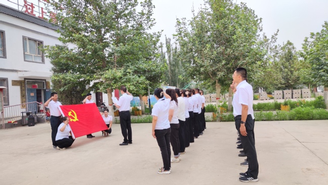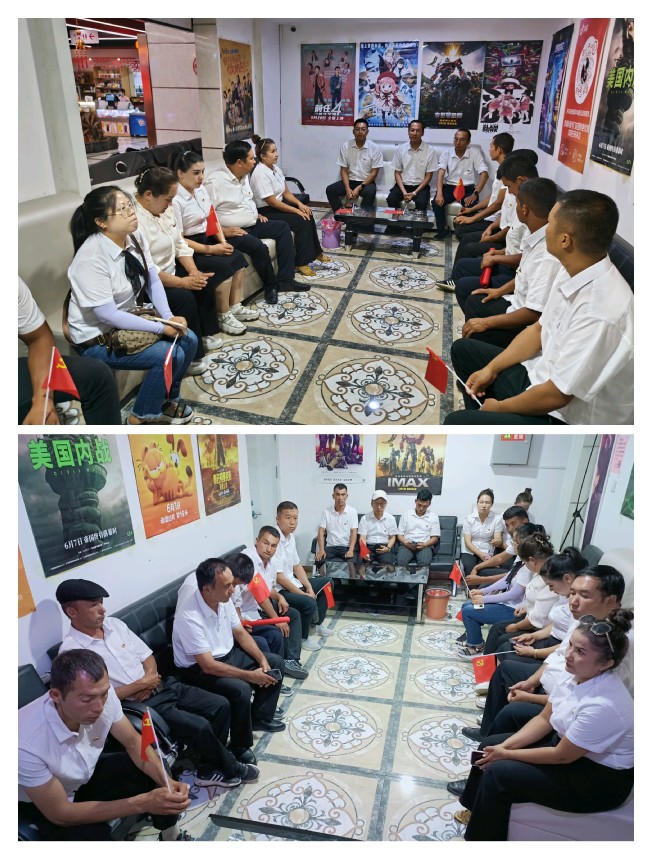 精心组织党日活动,增强纪律教育、底线意识。工作队坚持党建引领,依托党纪学习主题教育契机,联合村党支部开展“党旗映天山·党纪教育强党性,担当作为当模范”主题党日活动,组织全体党员通过参观莎车县反腐倡廉警示教育中心、过集体政治生日、举行升国旗仪式、重温入党誓词、观看主旋律影片《唤醒者》并座谈交流等方式,进一步增强党员干部心怀敬畏、谨言慎行、遵纪守法的纪律意识和底线意识。党员艾萨·库都斯感慨地说:“今天的主题党日活动准备得很充分,使我倍受教育。作为一名党员,我们决不能忘记中国共产党的初心和使命,坚定坚决听党话、感党恩、跟党走,坚决维护民族团结和祖国统一,用实际行动回报党的教育和培养”。阿布力米提·托合提说:“我家的幸福生活都是党的惠民政策带来的,感谢伟大、光荣、正确的中国共产党”。积极向党组织靠拢的工作队队员李龙说:“受邀列席参加主题党日活动感到非常光荣。每当看到身边的党员同志面向党旗庄严宣誓时都让我羡慕不已,观看了影片《唤醒者》则更坚定了我入党的决心,今后将时刻以一名合格党员的标准严格要求自己,争取早日加入中国共产党”。